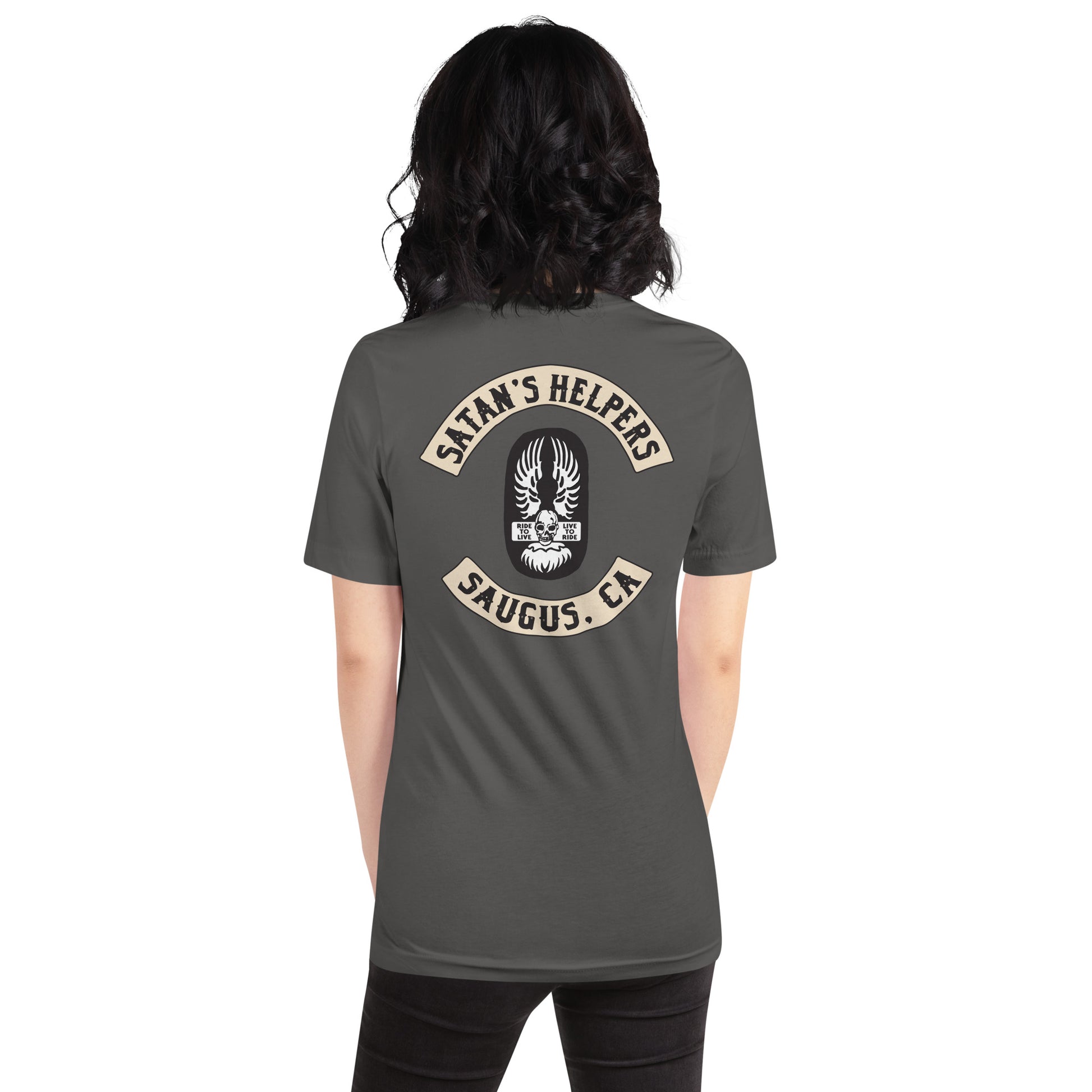 This design is printed on the back of the shirt. No printing on the front.